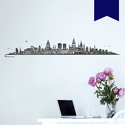WANDKINGS Wandtattoo Skyline Mainz (mit Sehenswürdigkeiten und Wahrzeichen der Stadt) 160 x 27 cm dunkelblau - erhältlich in 33 Farben