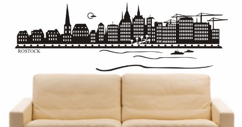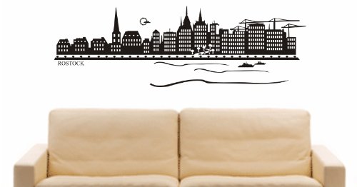 INDIGOS UG - Wandtattoo Wandsticker Wandaufkleber Aufkleber - Wandaufkleber e613 Skyline Stadt - Rostock (norddeutsche) Design 3-80x40 cm - [...]