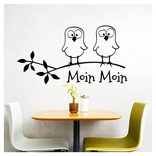 Grandora W5023 Wandtattoo Spruch Moin Moin + lustige Vögel I schwarz (BxH) 58 x 31 cm I Küche Esszimmer Aufkleber Wandsticker [...]