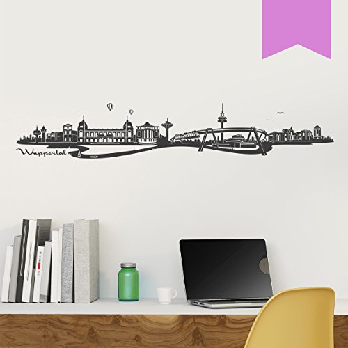 WANDKINGS Wandtattoo Skyline Wuppertal (mit Sehenswürdigkeiten und Wahrzeichen der Stadt) 80 x 14 cm Flieder - erhältlich in 33 Farben