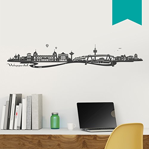 WANDKINGS Wandtattoo Skyline Wuppertal (mit Sehenswürdigkeiten und Wahrzeichen der Stadt) 185 x 32 cm türkis - erhältlich in 33 Farben