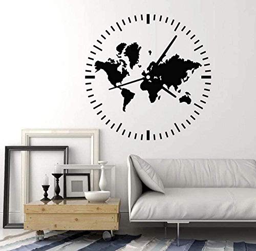 Wandtattoo Uhr mit Uhrwerk Globus Weltkarte Wanduhr Küche Kinderzimmer DIY von timalo® – 30 Farben | 76067-Tuerkis-M-58x58-Uhr-schwarz