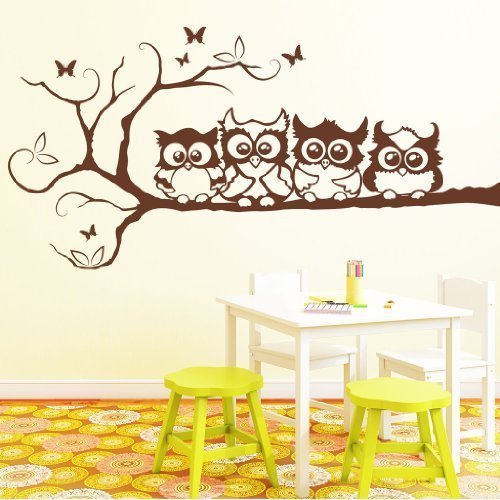 Wandtattoo-Loft Wandaufkleber „Vier Eulen Freunde“ Eulen auf AST Eulenwandtattoo - Wandtattoo / 49 Farben / 4 Größen / /