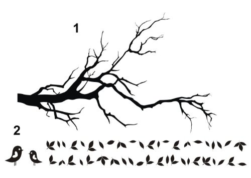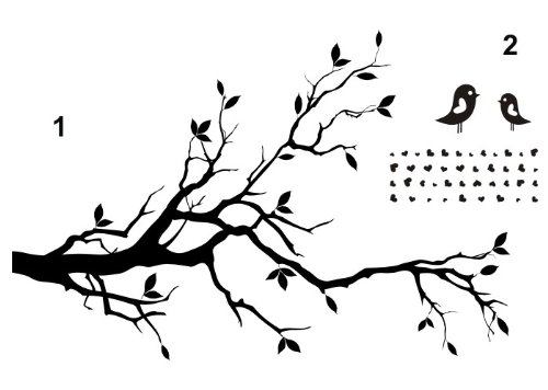 Wandtattooladen Wandtattoo - Ast mit Blätterregen und Vogelpärchen, 2-farbig Größe:110x70cm Farbe: hellgrau
