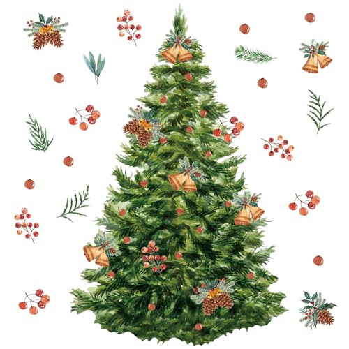 TOARTI Weihnachten Fenster Wandtattoo Weihnachtsbaum Große Wandaufkleber Baum Aquarell Fensteraufkleber Schneeflocken Kardinal Vogel [...]