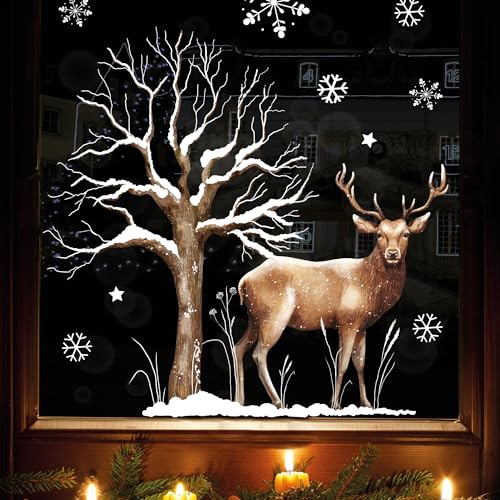 Wandtattoo Loft Fensterbilder Weihnachten Hirsch mit Baum und Schnee – Wiederverwendbar – A4 Bogen – Weihnachstdeko Fenster [...]