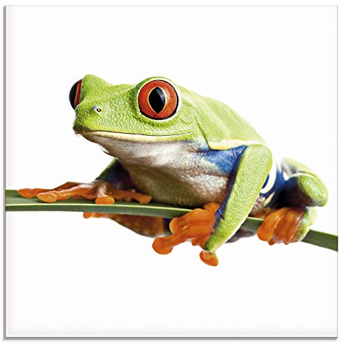 ARTland Glasbilder Wandbild Glas Bild einteilig 30x30 cm Quadratisch Natur Tiere Frosch Laubfrosch Blätter T0OE