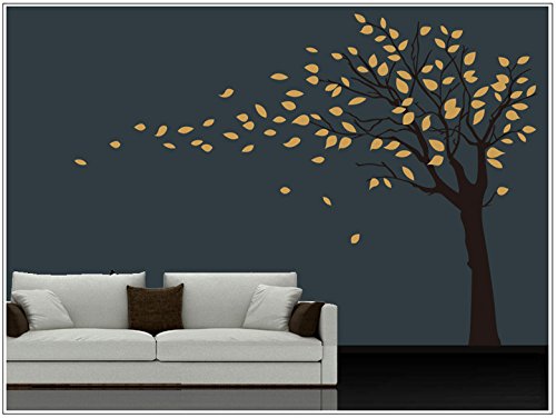 Wandtattoo wandaufkleber wandsticker wohnzimmer Baum wbm28(061 grün, set3:Baum 85cm x128 cm Hoch,Blatte frei platzieren )