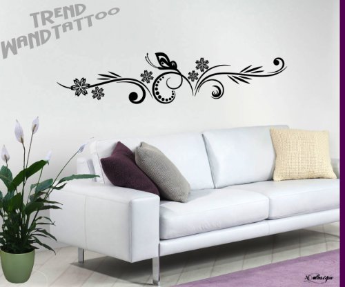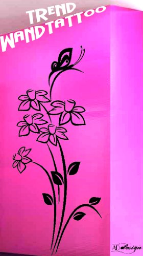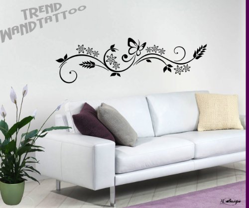 Trend Design Wandtattoo ***Ranke mit Blüten und Schmetterling*** Wunschfarben wählbar! von A&D design (80cm x 22cm)