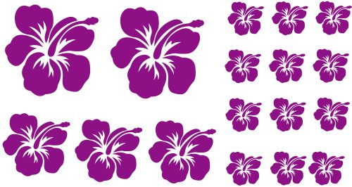 XL Design Set O in Violett 17 Stück HIBISKUS Blüten Autoaufkleber Blumen oder Wandtattoo selbstklebende Aufkleber fürs Auto, Wandsticker [...]