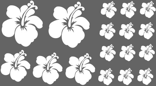 XL Design Set F in Weiss 17 Stück HIBISKUS Blüten Wandtattoo Blumen oder Autoaufkleber selbstklebende Wandsticker Out- & Indoor, [...]