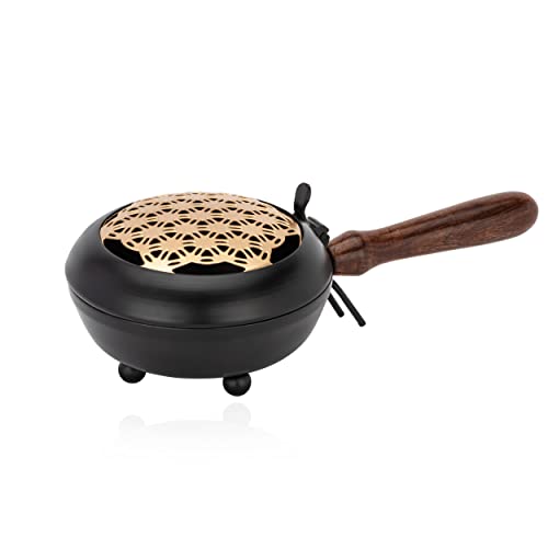 NKlaus Räucherpfanne aus Eisen Gold Blume des Lebens Räuchergefäß schwarz mit Holzgriff 11487