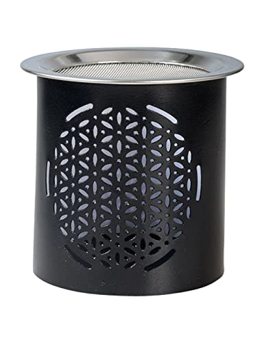 MaMeMi Schwarzes RÄUCHERSTÖVCHEN aus Eisen mit Blume Motiv – Handgefertigt, Sieb für Räuchern mit TEELICHT, 8 cm Höhe – [...]