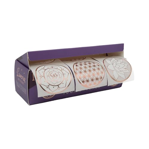 Loveria Yoga Sticker 150 Energie Sticker, Blume Aufkleber, Lotusblume, OM, rose gold metallic, rosa, je Motiv 50 Stück, ca. 4,5cm