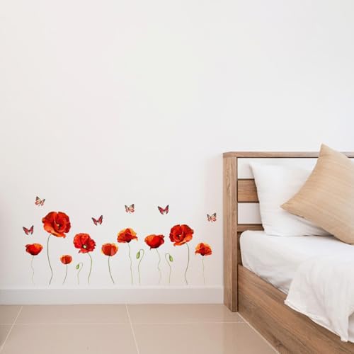 PLIGREAT Rote Blumen Schmetterlings Wandtattoo Wohnzimmer Schlafzimmer Kinderzimmer Küche Esszimmer Büro Flur Dekoration Mohnblumen [...]