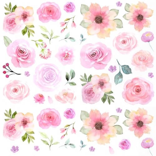 wondever Wandtattoo Pfingstrosen Rose Wandaufkleber Boho Blumen Wandsticker Wanddeko für Kinderzimmer Mädchen Schlafzimmer