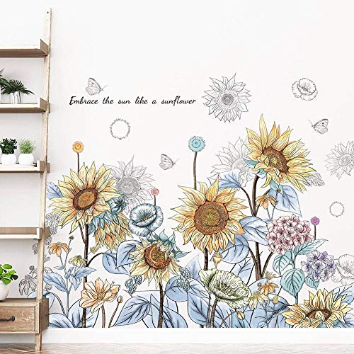 WandSticker4U® XL SONNENBLUMEN in GELB I Wandbilder: 92x63 cm I Blätter Pflanzen Liebe Wand aufkleber I Wand Deko für Schlafzimmer [...]