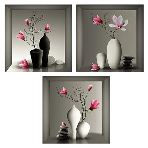 Fyihoxi 3 Stück 3D Vase, 3D Vase, 30x30cm 3D Vase Aufkleber, Vasen für für Kinderzimmer