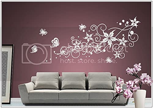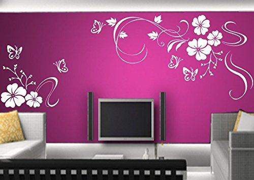 Wandtattoo Wandaufkleber Wohnzimmer Schlafzimmer, Flur, Studio Blumenranke 30 Farben zur Wahl Wpf31 (Größe2:ca.100x30cm, 010 Weiss)