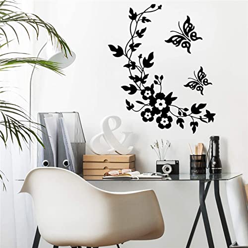 Wandaufkleber mit Schmetterlings-Motiv, Blumenranke, für Badezimmer, Dekoration, Schmetterling, PVC-Aufkleber, 28 cm x 34 cm