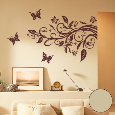Klebesüchtig A375 Hibiskus 92cm x 60cm Ranke + 3 Schmetterlinge beige