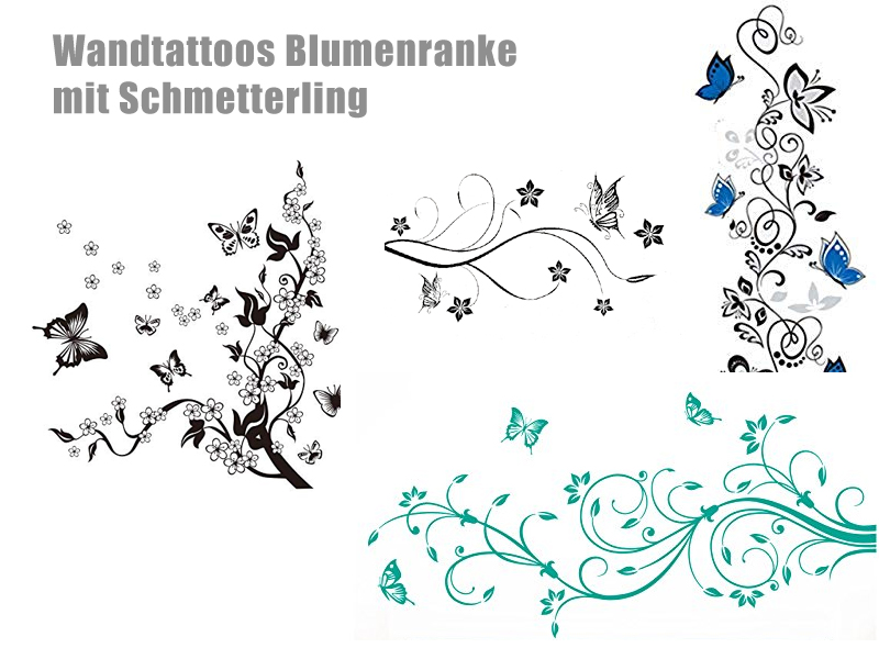 Ein Wandtattoo Blumenranke verspricht ein blumiges Ambiente. Egal ob Rose, Nelke oder Gerbera als Blumenranken oder Blütenranken geben sie ihrem Wohn- oder Schlafzimmer ein wundervolles Ambiente. Blumen und Blüten sind seit jeher als Dekoration geeignet, so sind die Wandtattoos mit Blumenranke ein besonderer Hingucker in jeder Wohnung. Einige Motive wirken besonders elegant in der Verbindung mit einem Schmetterling oder einem Vogel.