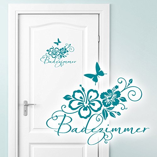 Grandora W764 WC Türaufkleber 'Badezimmer' + Hibiskus und Schmetterlinge Bad Wandtattoo Flieder 26 x 21 cm
