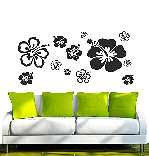INDIGOS UG - Wandtattoo Wohnzimmer - Wandaufkleber w197 Hibiskus Blume Wandaufkleber 96x44cm, schwarz - Kinderzimmer Schlafzimmer Küche [...]