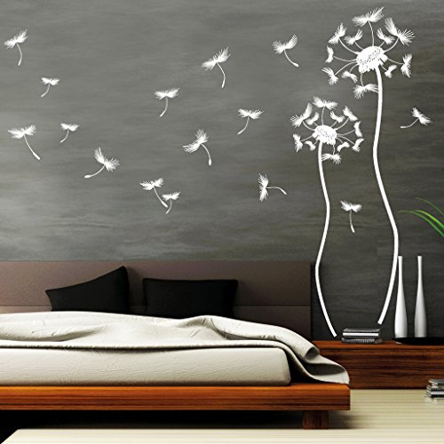 Wandtattoo-Loft „Zwei Pusteblumen“ mit 18 einzelne Pollen - Löwenzahn - Wandtattoo / 54 Farben / 4 Größen/türkisblau / 36 x 120 cm [...]