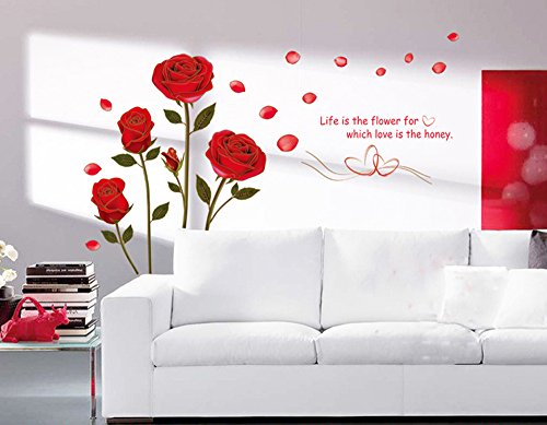 ufengke® Romantischen Roten Rosenblüten Wandsticker,Wohnzimmer Schlafzimmer Entfernbare Wandtattoos Wandbilder