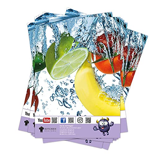 OneWheel, selbstklebende Küchenrückwand, Farbmuster harte PVC Folie, Wandtattoo für Fliesenspiegel Design Obst Weiss, Motiv: Veggiesplash
