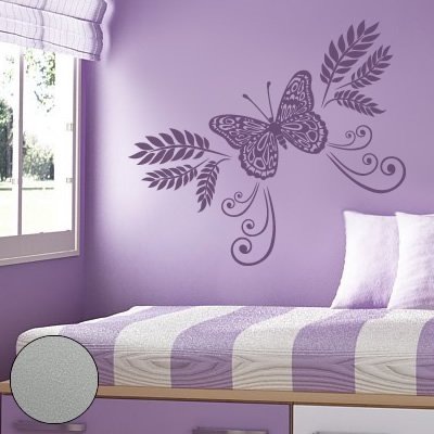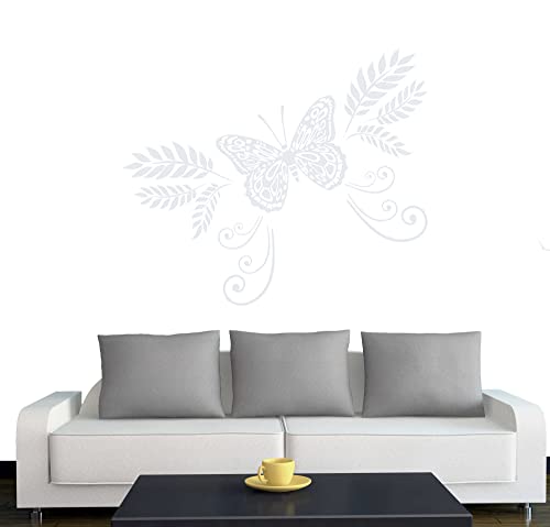 Klebesüchtig A169 Wandtattoo Butterfly Ranke 100cm x 59cm Silber - Dekoration - Bad - Wohnzimmer - Aufkleber - Wandsticker