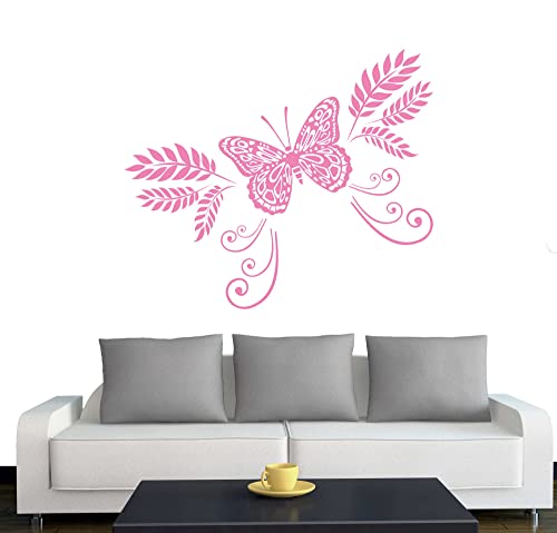 Klebesüchtig A169 Wandtattoo Butterfly Ranke 90cm x 53cm rosa - Dekoration - Bad - Wohnzimmer - Aufkleber - Wandsticker