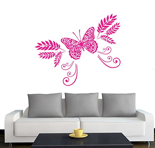 Klebesüchtig A169 Wandtattoo Butterfly Ranke 90cm x 53cm pink - Dekoration - Bad - Wohnzimmer - Aufkleber - Wandsticker