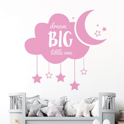 Wandtattoo Dream Big Little One , Wolke, Sterne, Mond XLarge (820 x 800mm) rose