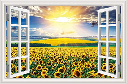 MUMUWUSG Vinyl 3D Wandaufkleber 160X120Cm Himmel Sonnenuntergang Pflanzen Sonnenblumen Wandtattoo Wandaufkleber 3D Fensteransicht Aufkleber [...]