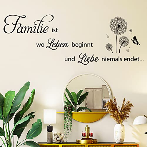 Wandtattoo Sprüche 100x35cm Wandsticker Familie ist wo Leben beginnt Pusteblume Schwarz Wandaufkleber Selbstklebend Familienspruch Sticker [...]
