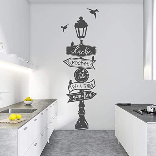 DESIGNSCAPE® Wandtattoo Laterne mit Wegweiser für die Küche | Farbe: dunkelgrau | Größe: mittel (43 x 140 cm)