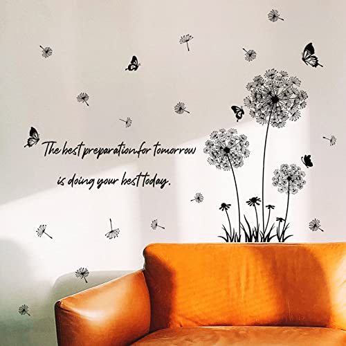 2 Stück Wandtattoo Pusteblume, Löwenzahn Wandaufkleber, Schwarze Wandsticker Löwenzah, Groß Wandtattoo Löwenzahn, Schmetterling [...]