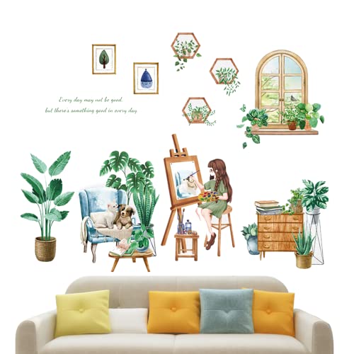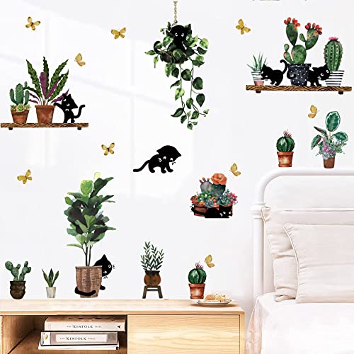 ANHUIB Wandsticker Pflanzen,Wandtattoo Pflanzen Blumen Katzen,Wandaufkleber Katzen mit Topfpflanze,Wandaufkleber Cactus Grüne Wohnzimmer [...]