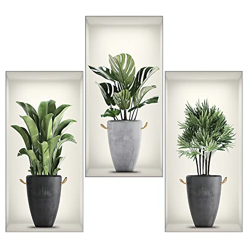 VOSSOT 3 Stück 3D Wandaufkleber Vase, Vasen Wandtattoo für Wohnzimmer, Grüne Pflanzen Wandsticker, Wohnzimmer Schlafzimmer Küche Decor [...]