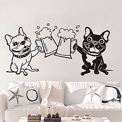 NSRJDSYT Bier Trinken Wandaufkleber Bar Küche Bulldoggen Haustier Freund Bier Wandtattoo Esszimmer Dekor 118x57cm