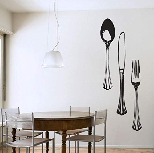 Besteck Set Vinyl Wandtattoo Küche Restaurant Wandaufkleber Löffel Messer Gabel Decals Dekoration Wasserdicht Wandbild 57x21 cm