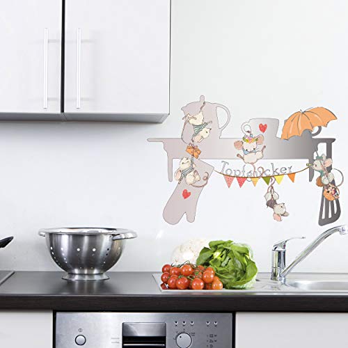 Wandtattoo Aufkleber Küchenaufkleber Dekoration Küche Mäuse Maus Topfgucker (Schwarz, Größe 1 = 46 x 30cm)