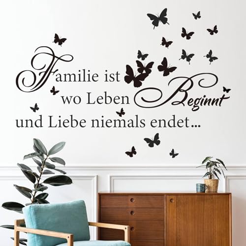 decalmile Wandtattoo Sprüche Familie ist Wo Leben Beginnt Wandaufkleber Liebe Sprüche und Zitate Schwarz Schmetterlinge Wandsticker [...]