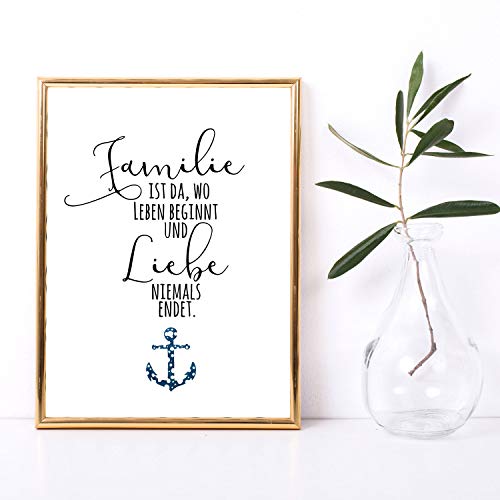 ilka parey wandtattoo-welt Print Poster Motiv in A3 mit Spruch Familie Liebe Motto & Anker Plakat Deko Wohnzimmer Küche Druck p202