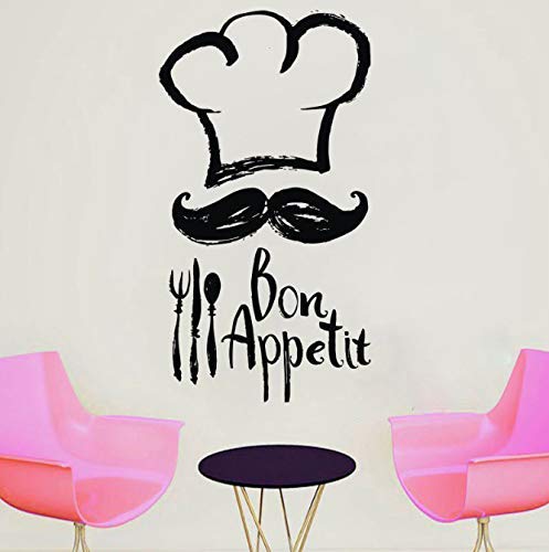 Chef Schnurrbart Küche Vinyl Aufkleber Kochen Tall Chef Zitat Benz Appetit Wandtattoo Raumdekoration Wasserdicht 42X78Cm