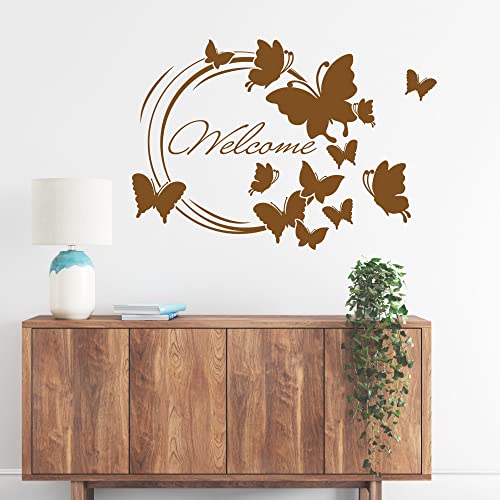GRAZDesign Wandtattoo Flur Welcome Schmetterlinge, Willkommen Spruch, Sprüche für Eingang Wandaufkleber - 58x40cm / 070 schwarz