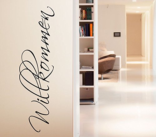 Wandtattoo-Günstig G089 Wort Willkommen Wandaufkleber Wandsticker Flur Wohnzimmer dunkelgrau (BxH) 25 x 90 cm