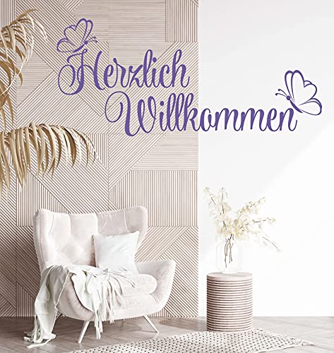 Wandtattoo Herzlich Willkommen mit Schmetterlingen X7 - Flur - Größen und Farbauswahl